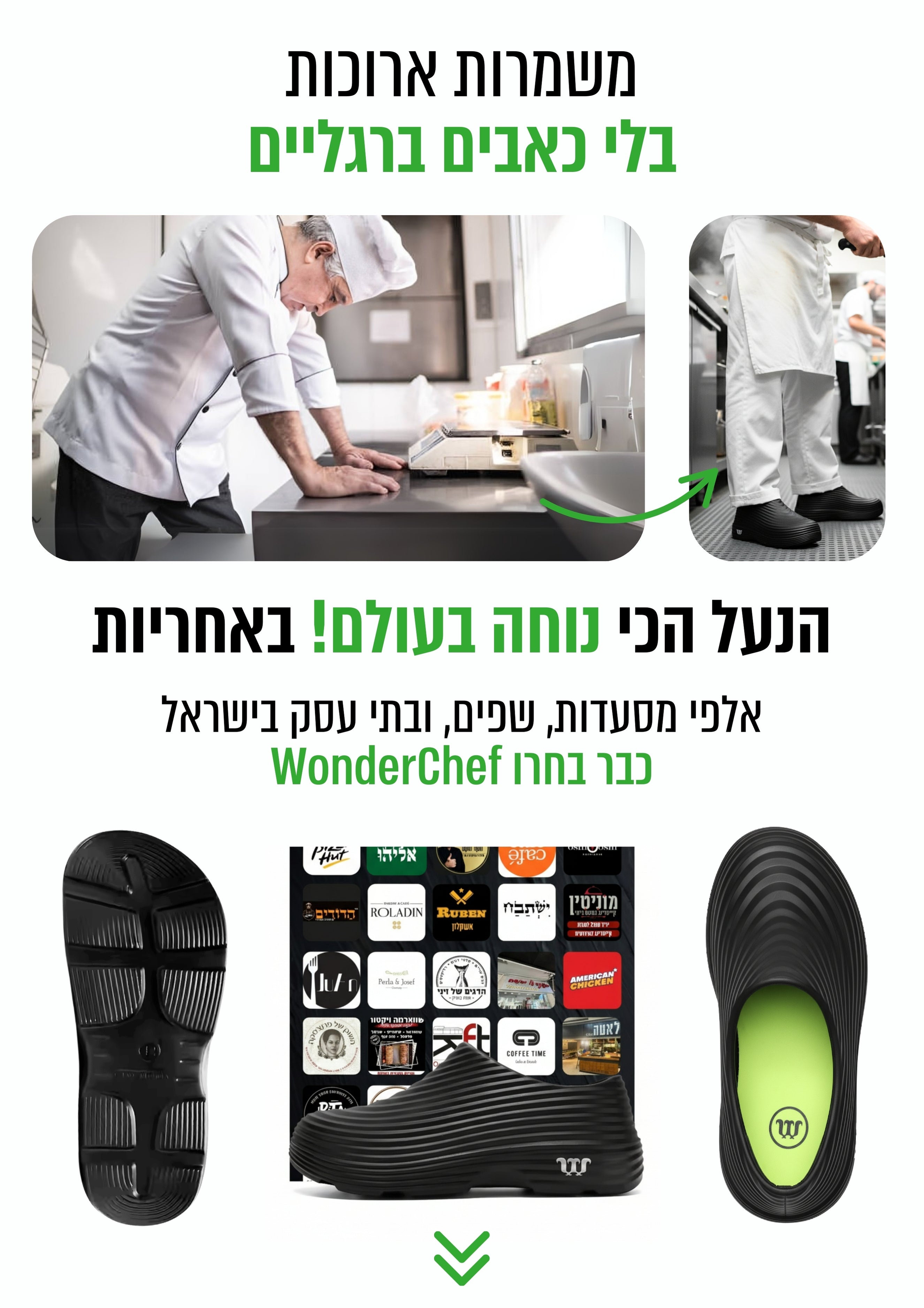 נעלי WonderChef™ Balance עוצבו במיוחד עבור שפים, עובדי מטבח ואנשי מקצוע שעובדים שעות ארוכות על הרגליים – וצריכים נעל שתעמוד בקצב.